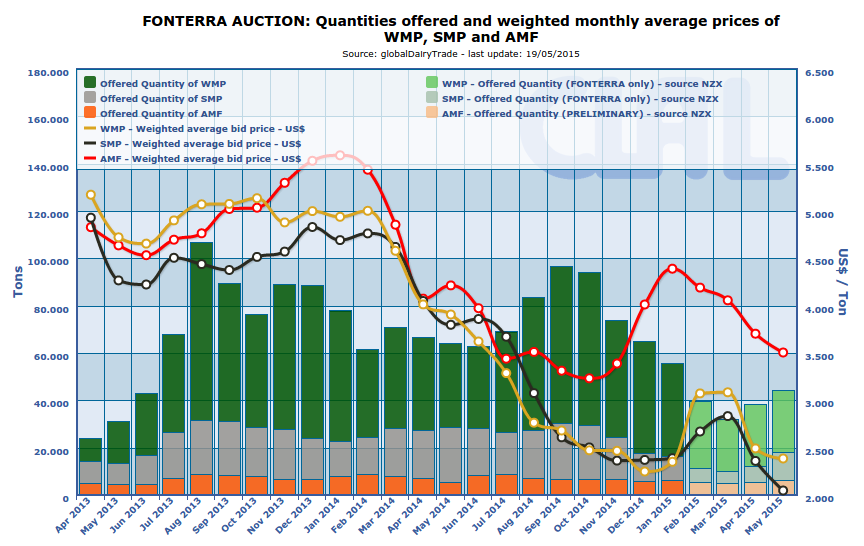 WMP: prices moved significantly lower on the upper end of the range; supplies for export are readily available in New Zealand, but limited in Australia; efforts to reduce supplies to appropriate levels prior to the end of the fiscal year are prompting some manufacturers to provide additional discounts.