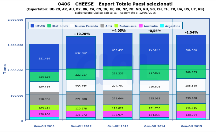 - Produzione di latte: in Novembre è stata inferiore del 2,13% rispetto a Novembre 2014.