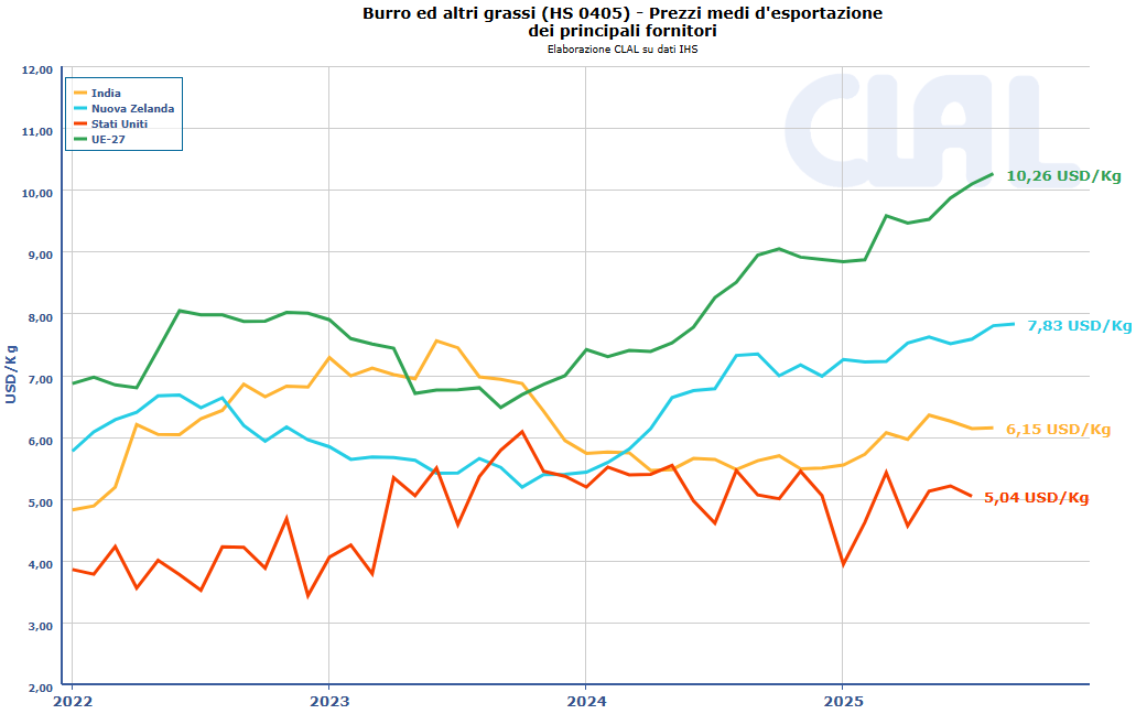 CLAL.it – Burro: Prezzi medi d’esportazione